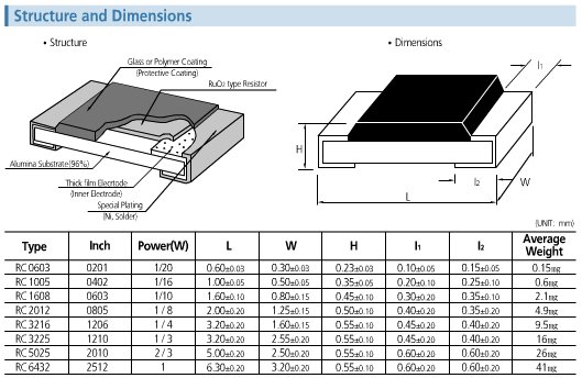 貼片電阻系列:0201、0402、0603、0805、1206、1210、1812、2010、2512、1225、3720、7520;